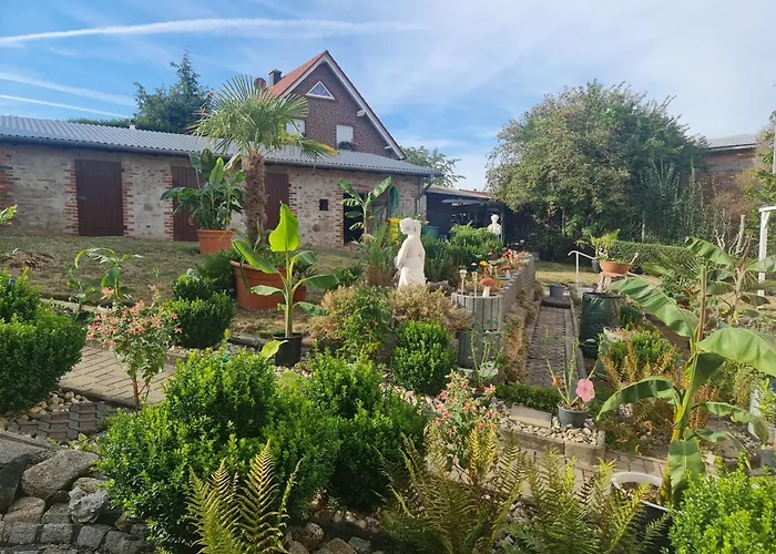 La cocinilla bien aprovisionada, completa con servicio de tetera/cafetera, cafetera, un horno y utensilios de cocina ofrece todas las comodidades necesarias para una estancia cómoda. El aeropuerto Leipzig/Halle, el más cercano, se encuentra a 120 km del establecimiento, mientras que la estación de autobuses Stecklenberger Strasse está a unos 100 metros. Participar en actividades como senderismo, equitación y pesca puede añadir un toque emocionante a la estancia de los huéspedes.
